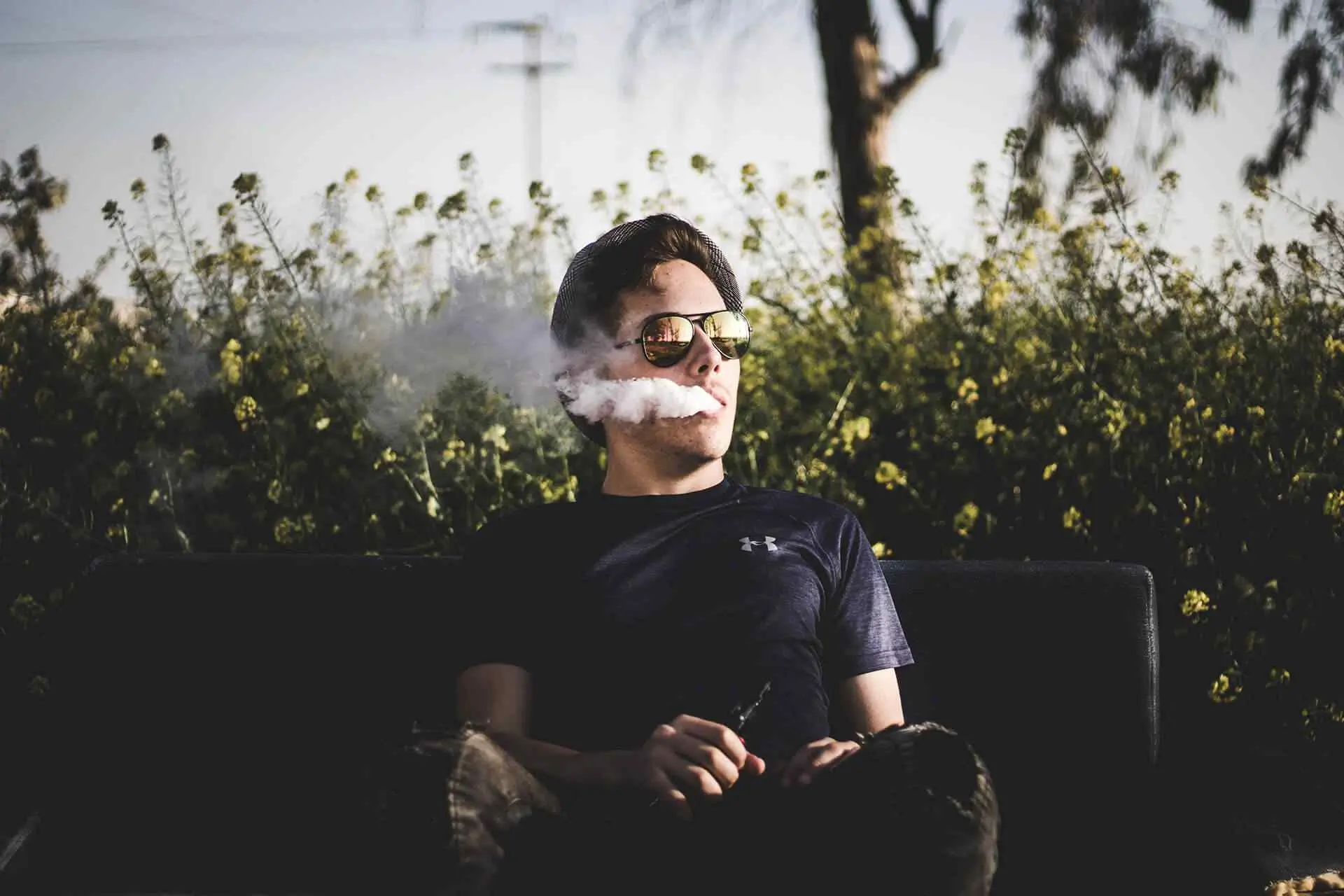 Silhouette of bearded smoking man vaping vape with kaleidoscope effect